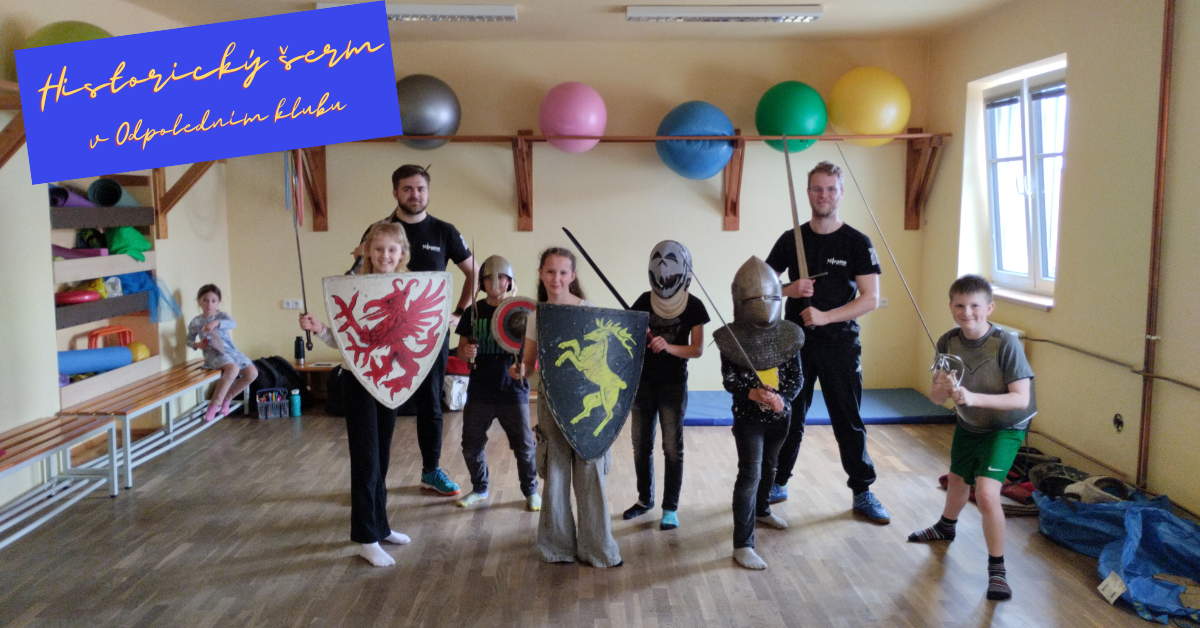 Na fotografiích jsou zachyceni děti z Odpoledního klubu při aktivitě ukázka a nácvik nejen historického šermu.