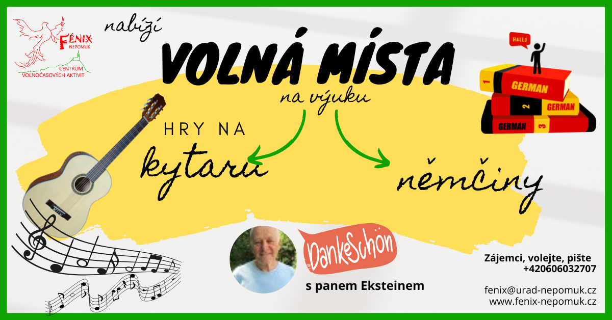 Volnočasové centrum Fénix Nepomuk nabízí volná místa v kurzech hry na kytaru a výuku německého jazyka.